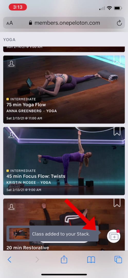 It should open the Peloton workout in the Safari browser. You can stack on-demand workouts so your classes transition quickly. Locate the Stack icon or Stack tab on your Peloton product.