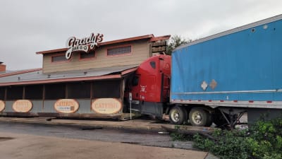 Driver Unhurt After Amazon Truck Crashes Into Restaurant Breaks Open